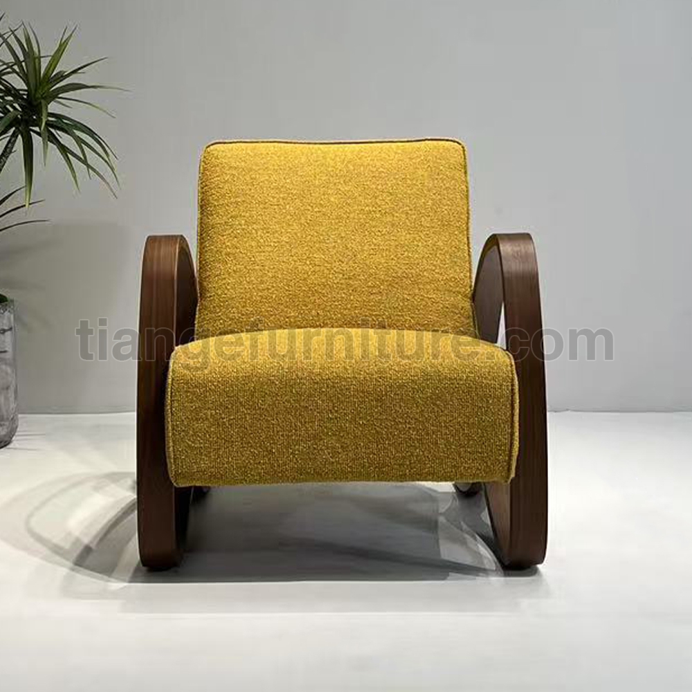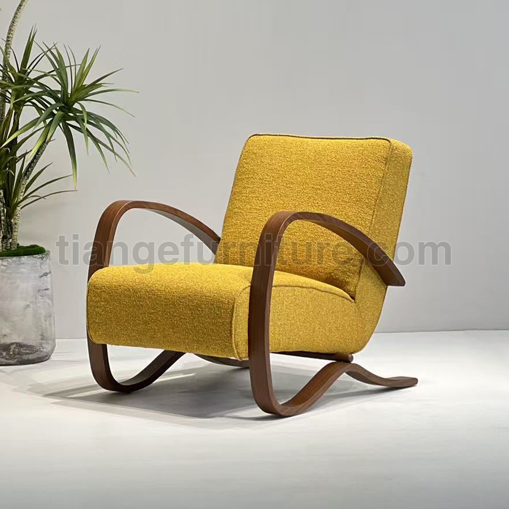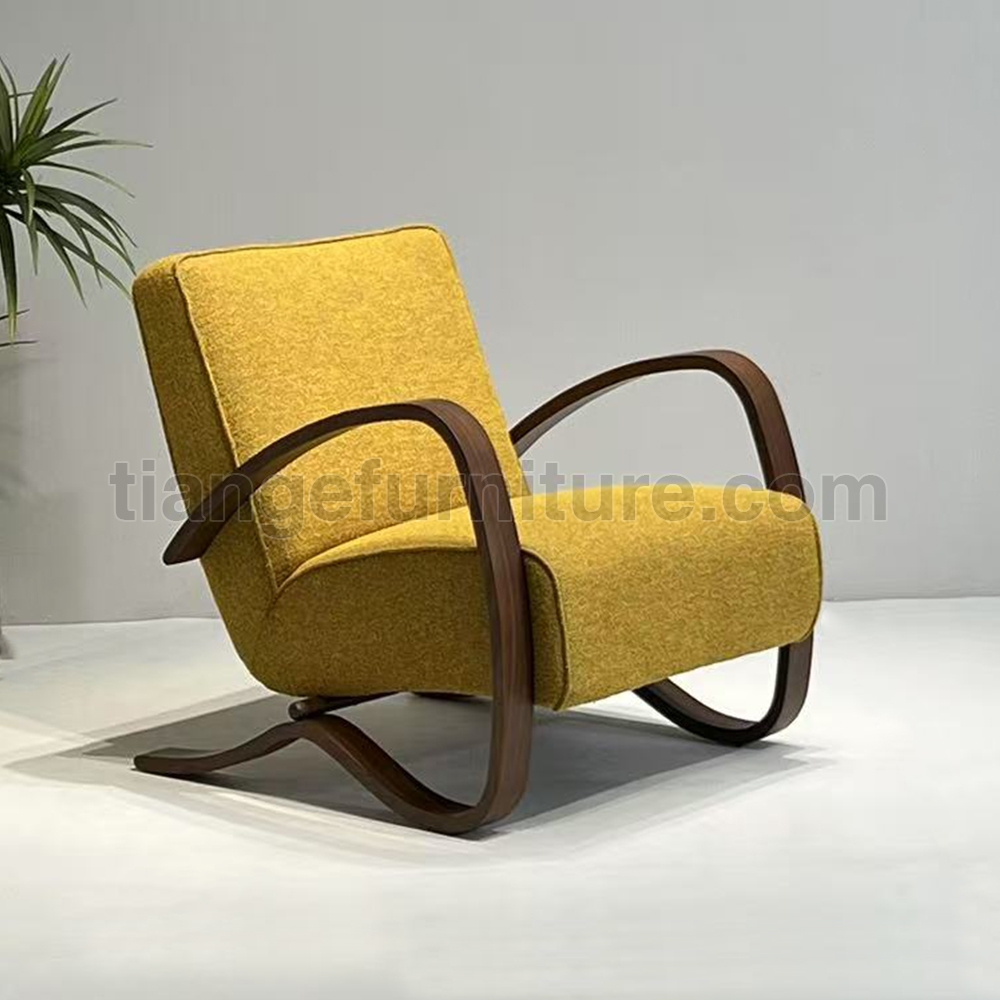 This art deco armchair H-269 was designed by Jindřich Halabala for UP Závody and produced in the 1930s. It is made of ebonized bentwood and features wooden components and spring seats. Completely restored. The wooden elements have been cleaned of old coating painted with an oak stain and finished with a strong semi matt lacquer. The armchair is upholstered with new high-quality yellow fabric.