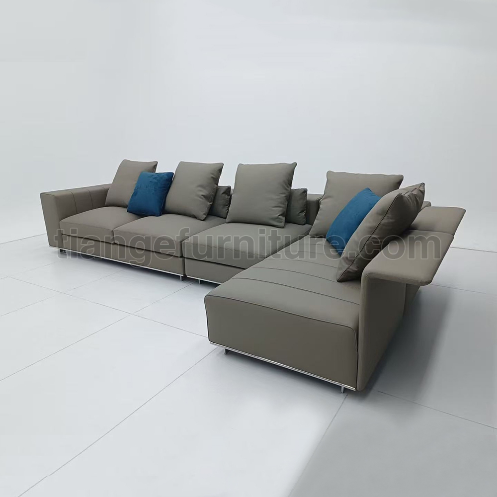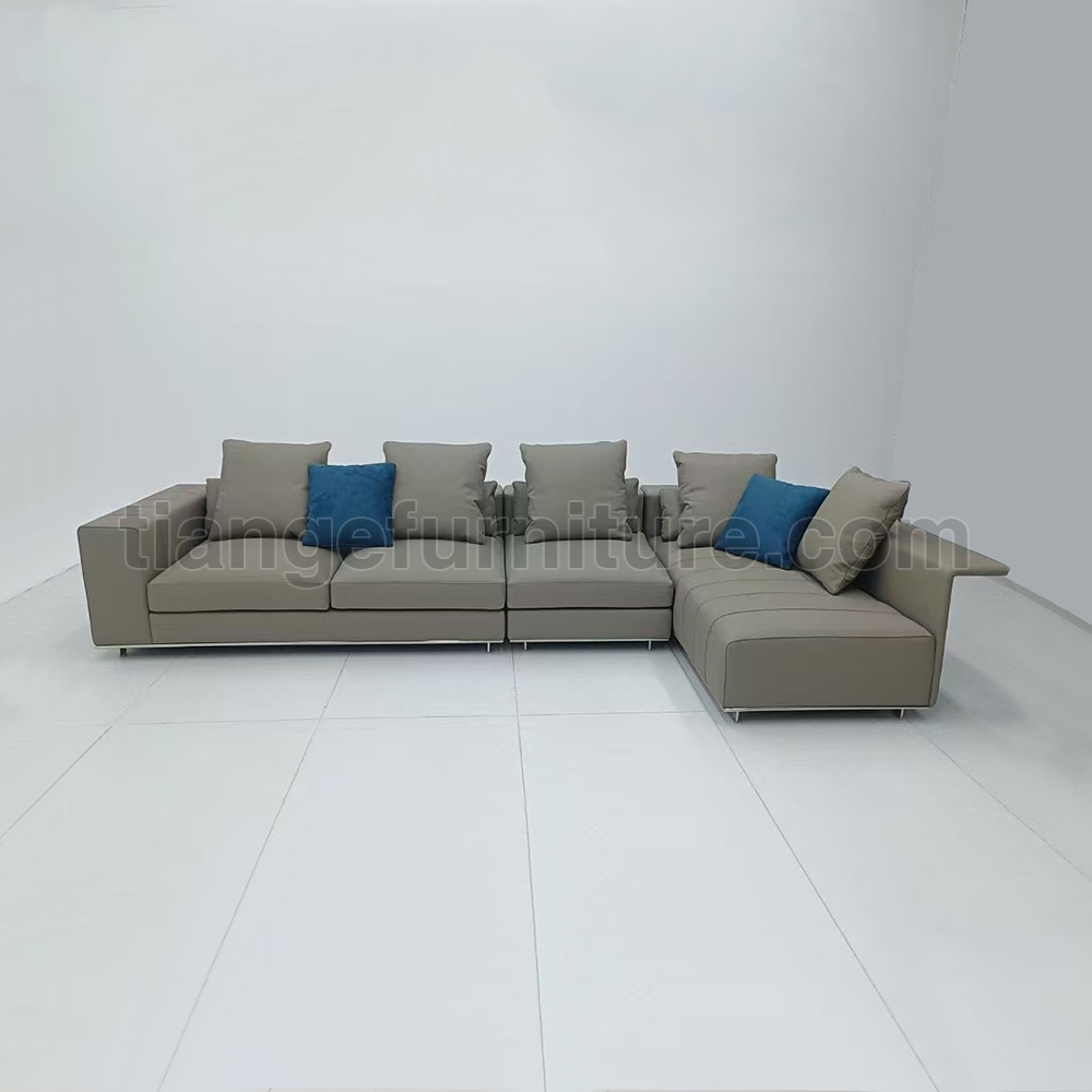 With its highly innovative personality, Freeman “Tailor” interprets the current widespread need to create dynamic, differently accessorized islands of relaxation in which to live more intimately - like for reading and chilling out completely, or more social moments like conversing or spending time with family and friends. Freeman “Tailor” is an orderly clustering of shapes, with one-piece seats decorated with elegant stitching that accentuates its graphic, modern personality. The sophisticated tailoring of the upholstery reveals the company’s expertise in executing extremely complex fine-tailoring techniques. The pieces in fabric are assembled using a strip of eco-leather and double-stitched motif that lend a unique sense of depth.