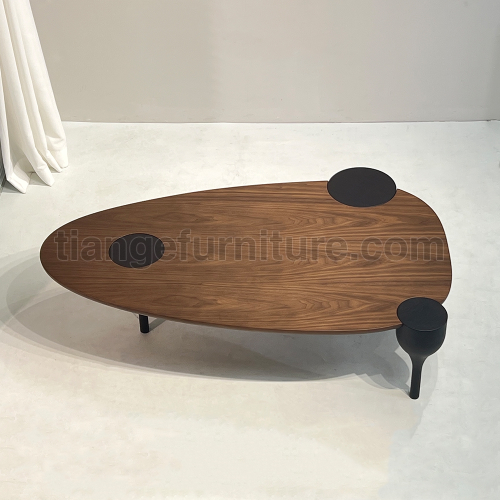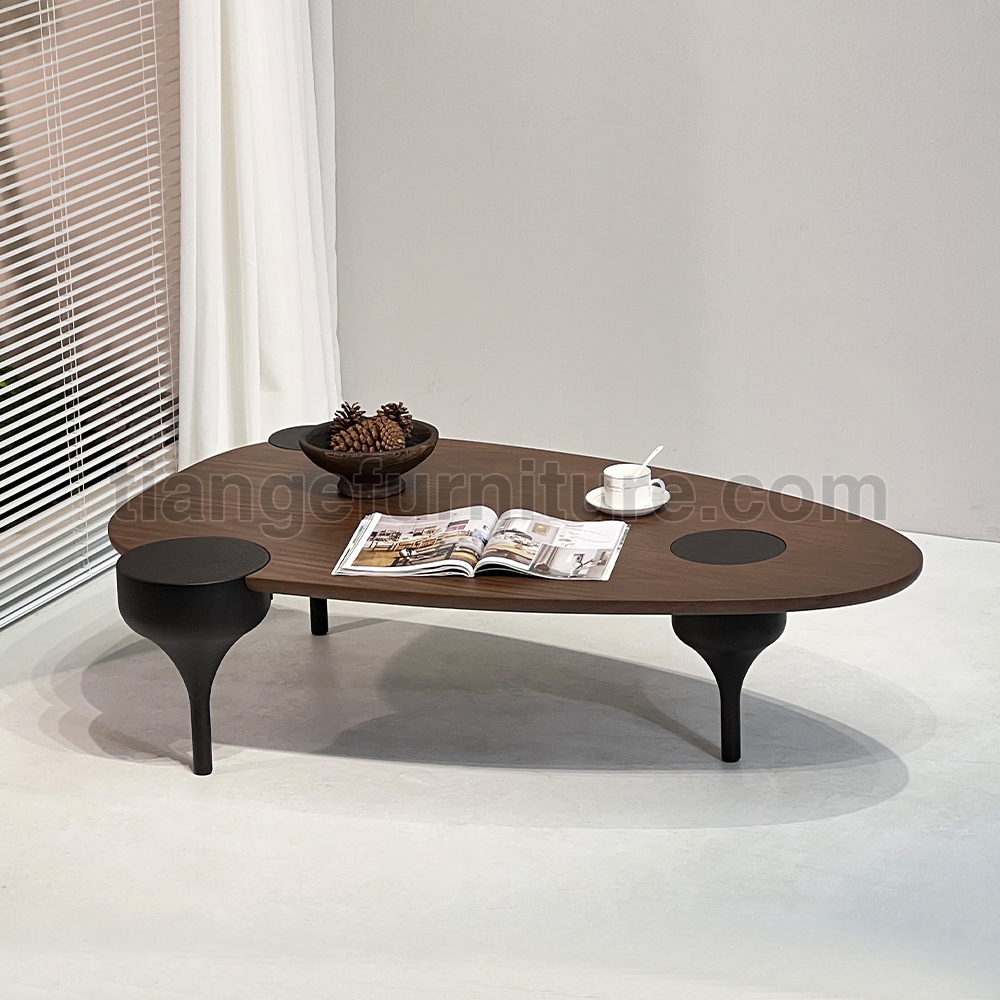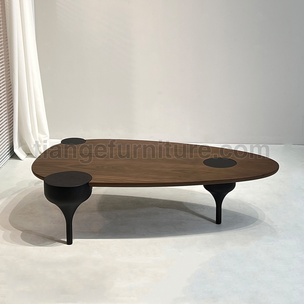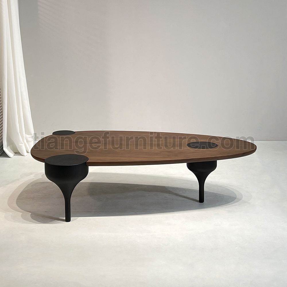 The Reuleaux Collection, celebrates the softer side of nature. The rounded, asymmetrical tops and elegantly tapered legs combine to mimic the gentle, rounded edge of a glacial pond, the languid meandering of a river estuary, or the smoothness of a river stone. Designed by Bruce Andrews.
