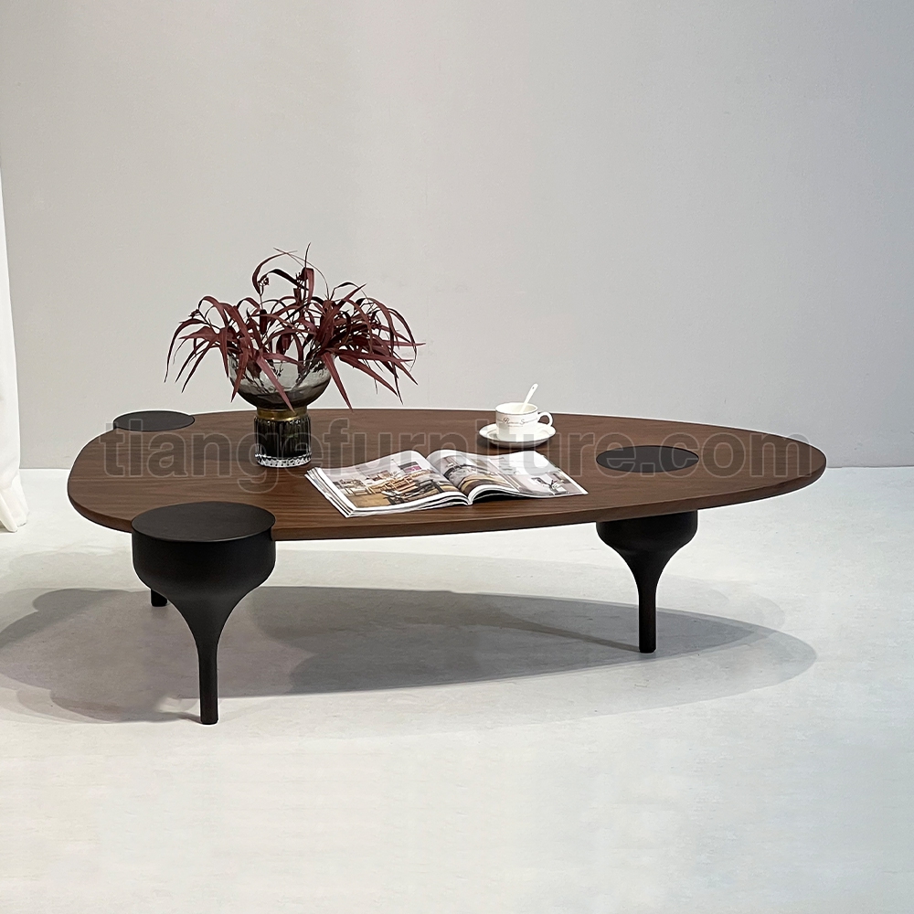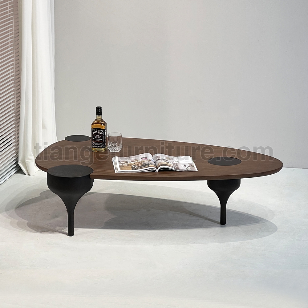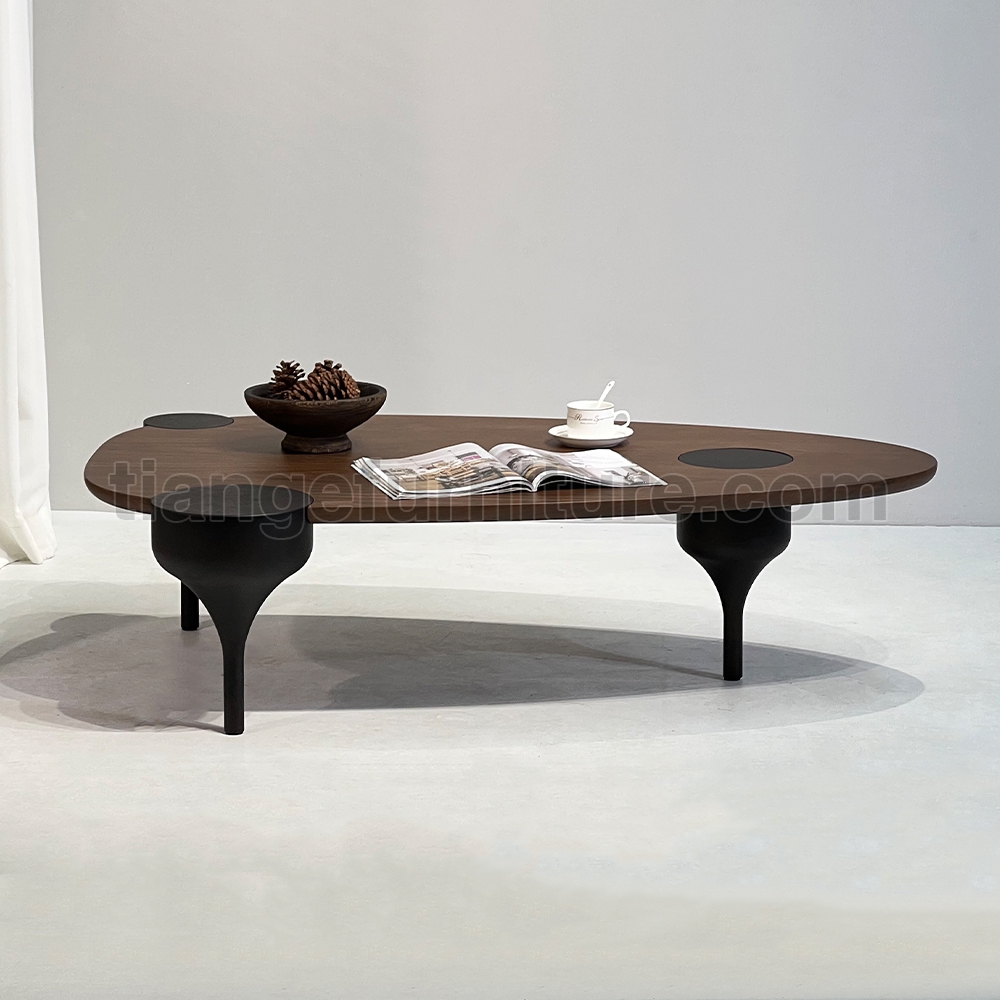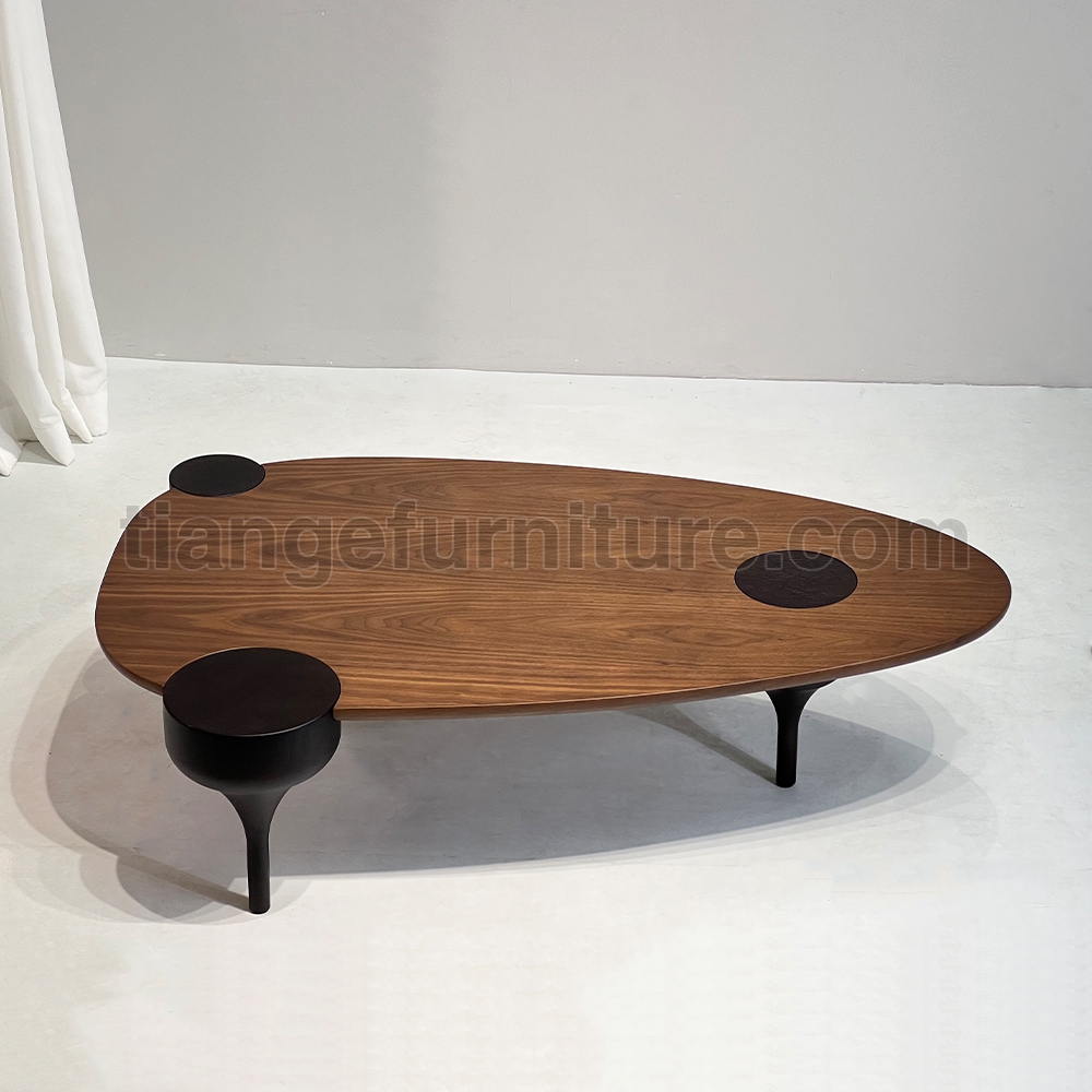 The Reuleaux Collection, celebrates the softer side of nature. The rounded, asymmetrical tops and elegantly tapered legs combine to mimic the gentle, rounded edge of a glacial pond, the languid meandering of a river estuary, or the smoothness of a river stone. Designed by Bruce Andrews.