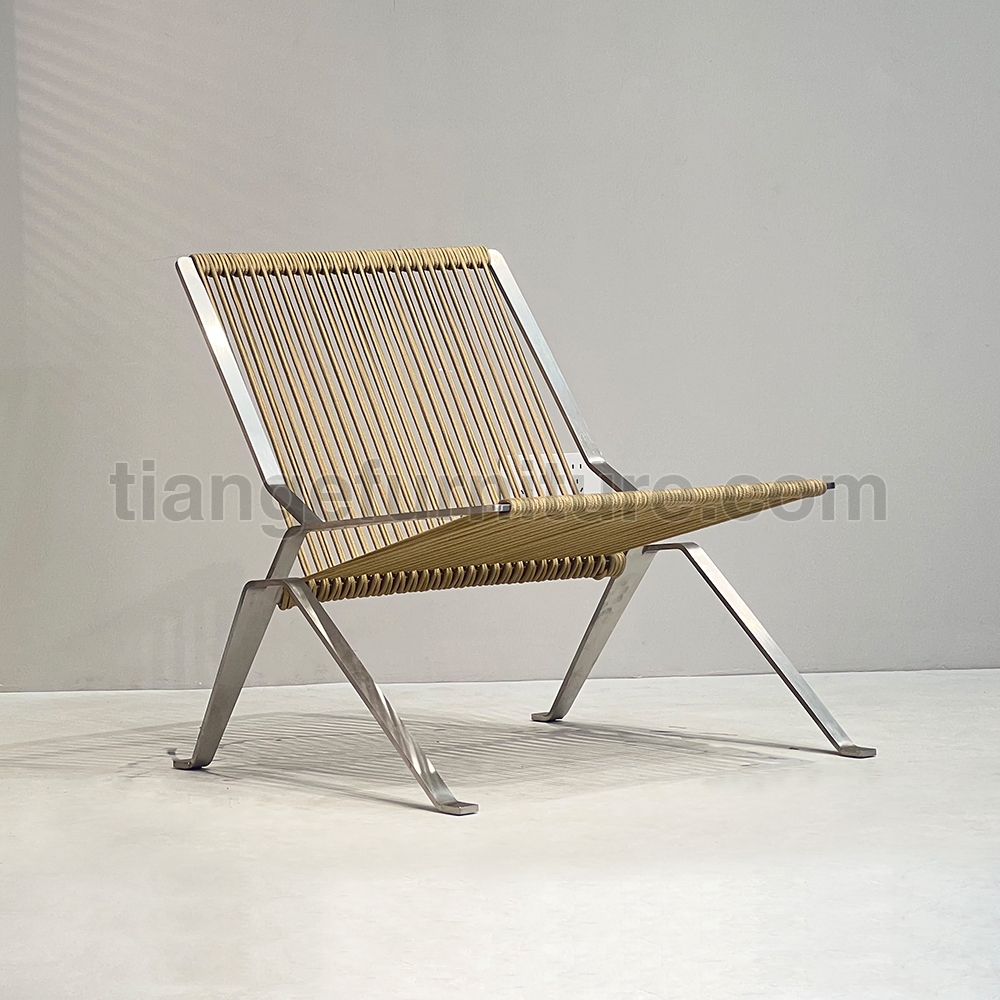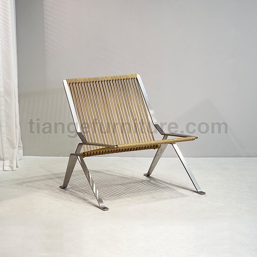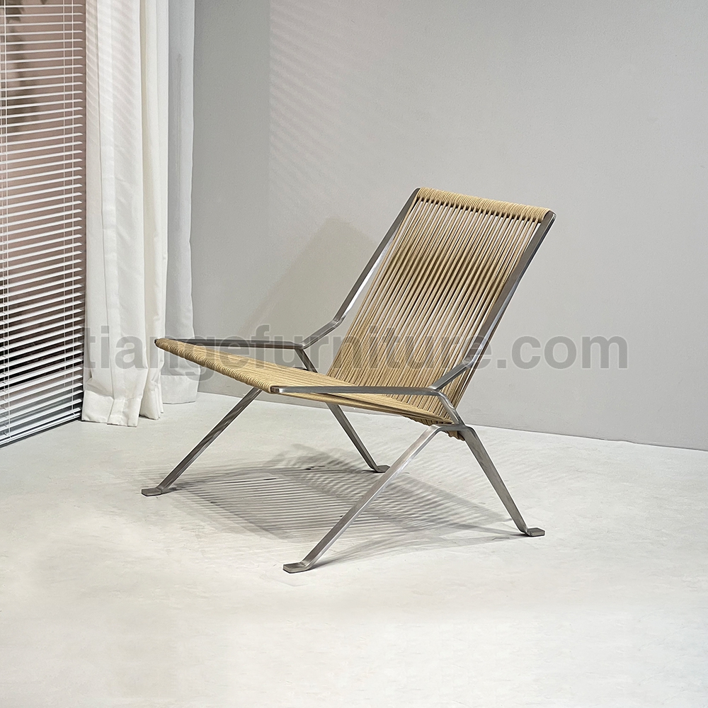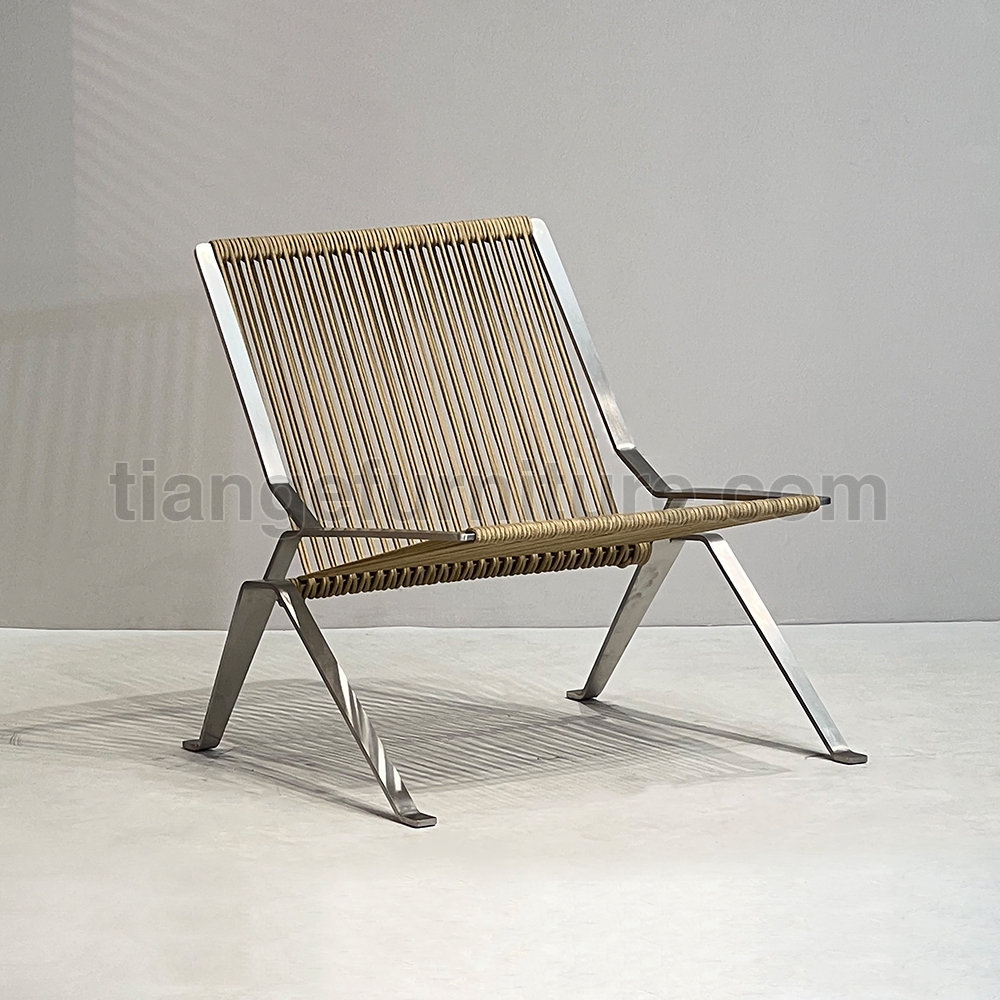 The PK25™ was designed by Poul Kjærholm for his final graduation project at the School of Arts and Crafts in 1952. Also known as the ‘Element’ chair, the PK25 is a striking example of Kjærholm’s eagerness to transform common, industrial materials into striking works of art. Kjærholm was determined to reduce the chair to a single piece of each material, resulting in its overarching hallmark: the continual steel frame that bends through the form without interruption.
