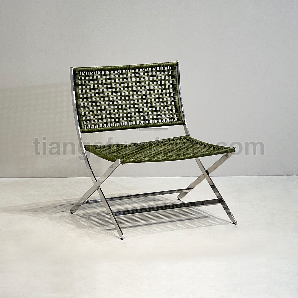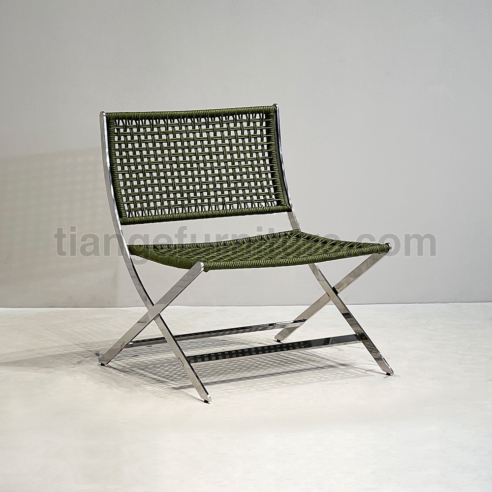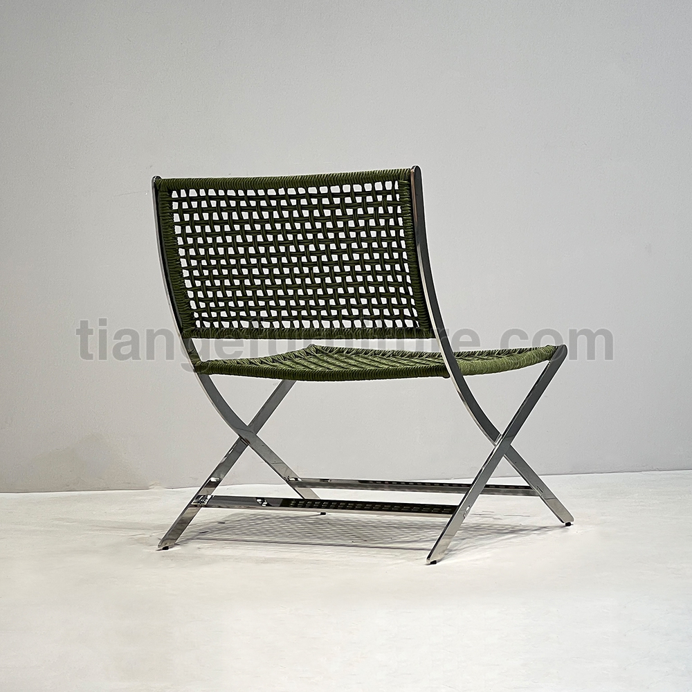 Lending the Peter armchair unpretentious sophistication, two curved metal legs cross, forming an elegant X design. The ample woven cowhide seat and seat back imbue the Peter armchair with airy lightness and a typically outdoor vibe. The Peter armchair can be coordinated with its eponymous footstool.