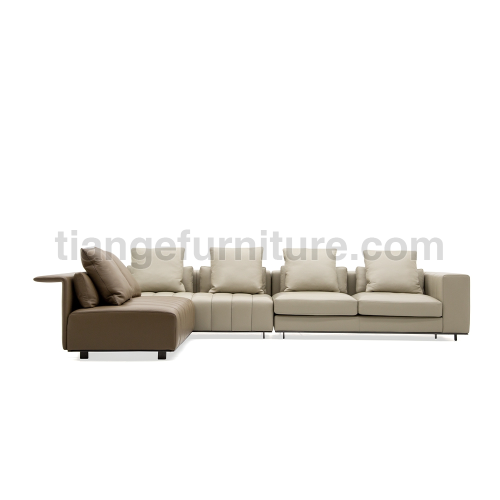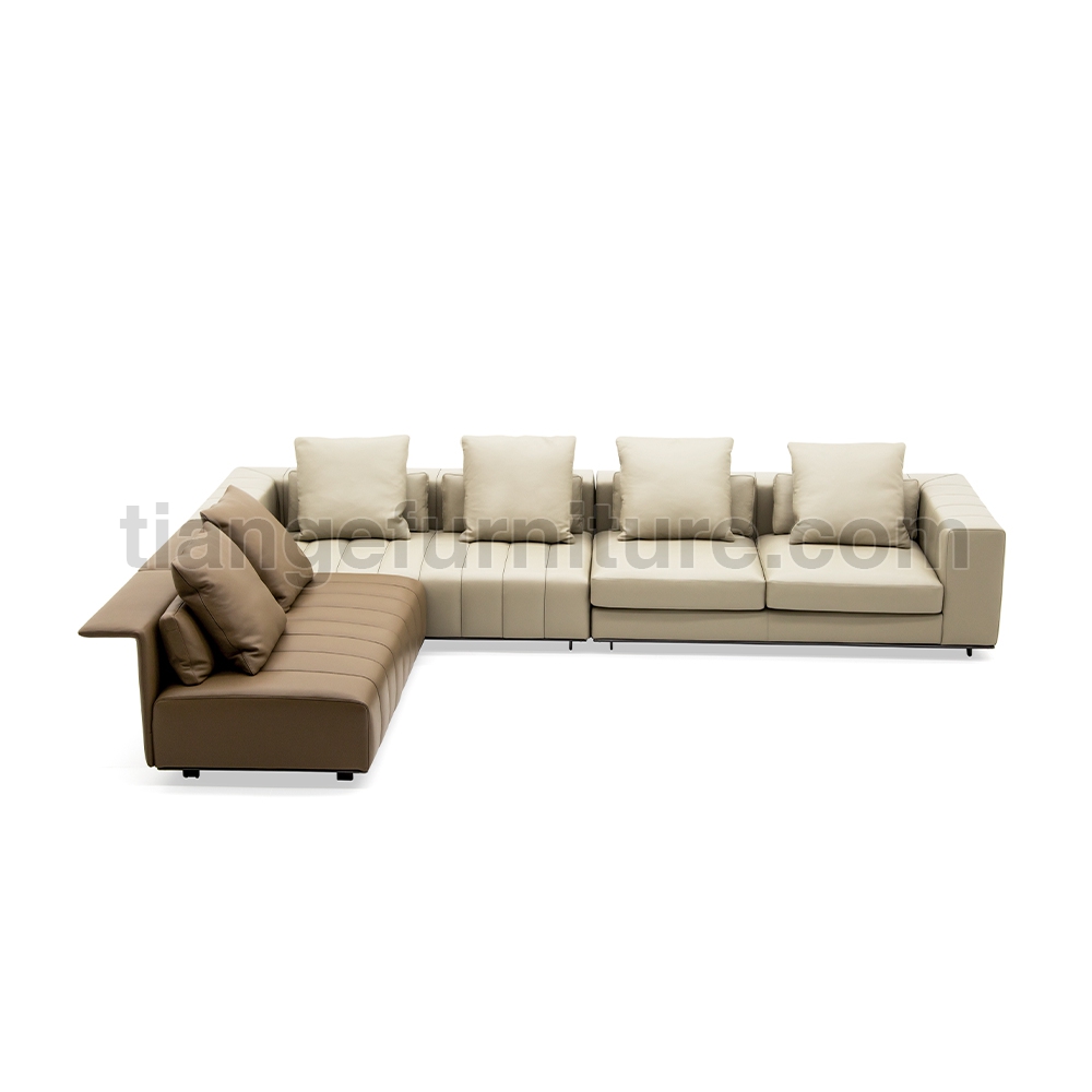 With its highly innovative personality, Freeman “Tailor” interprets the current widespread need to create dynamic, differently accessorized islands of relaxation in which to live more intimately - like for reading and chilling out completely, or more social moments like conversing or spending time with family and friends. Freeman “Tailor” is an orderly clustering of shapes, with one-piece seats decorated with elegant stitching that accentuates its graphic, modern personality. The sophisticated tailoring of the upholstery reveals the company’s expertise in executing extremely complex fine-tailoring techniques. The pieces in fabric are assembled using a strip of eco-leather and double-stitched motif that lend a unique sense of depth.