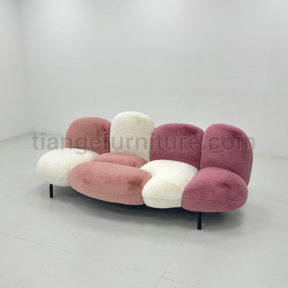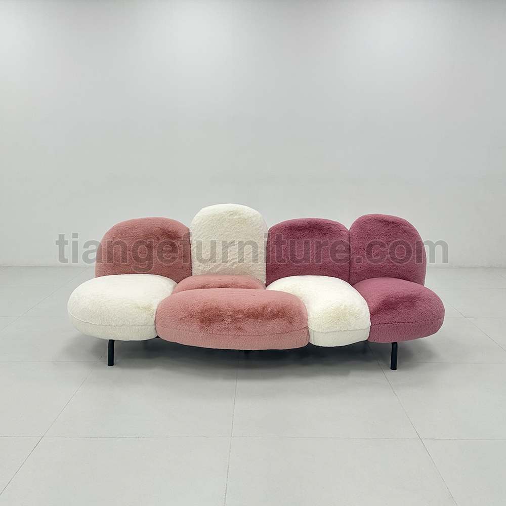 Cipria is a sofa composed of nine structural cushions that resemble powder puffs attached to an invisible metal tube frame. Very comfortable thanks to the stuffing in Gellyfoam® and synthetic wadding. Thanks to the ecological fur covering, it is soft to the touch like a caress.