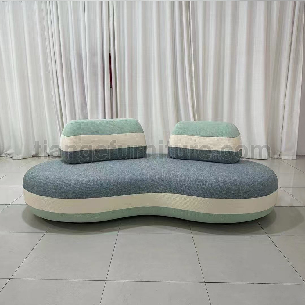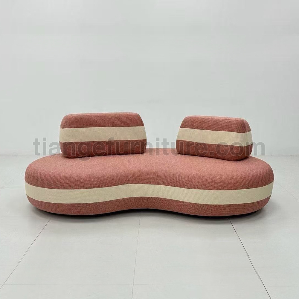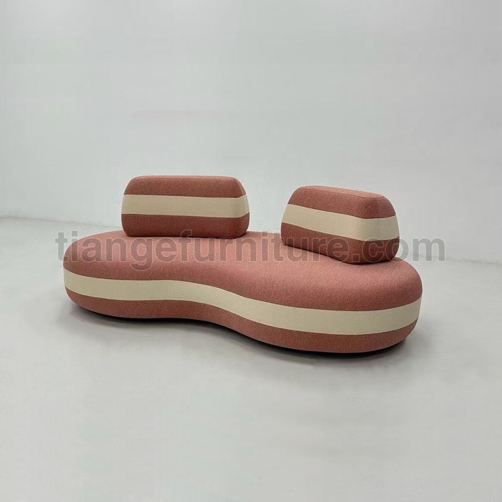 Bombom is a collection of sofas, cocktail tables, rugs, and cushions which are composed and created with organic shapes imagined by the artist Joana Vasconcelos. The lines of these units reflect the fluid-like, colorful, and surprising forms found in the artist's mural works. The sofa backs are all movable, allowing everyone to tailor their own comfort.