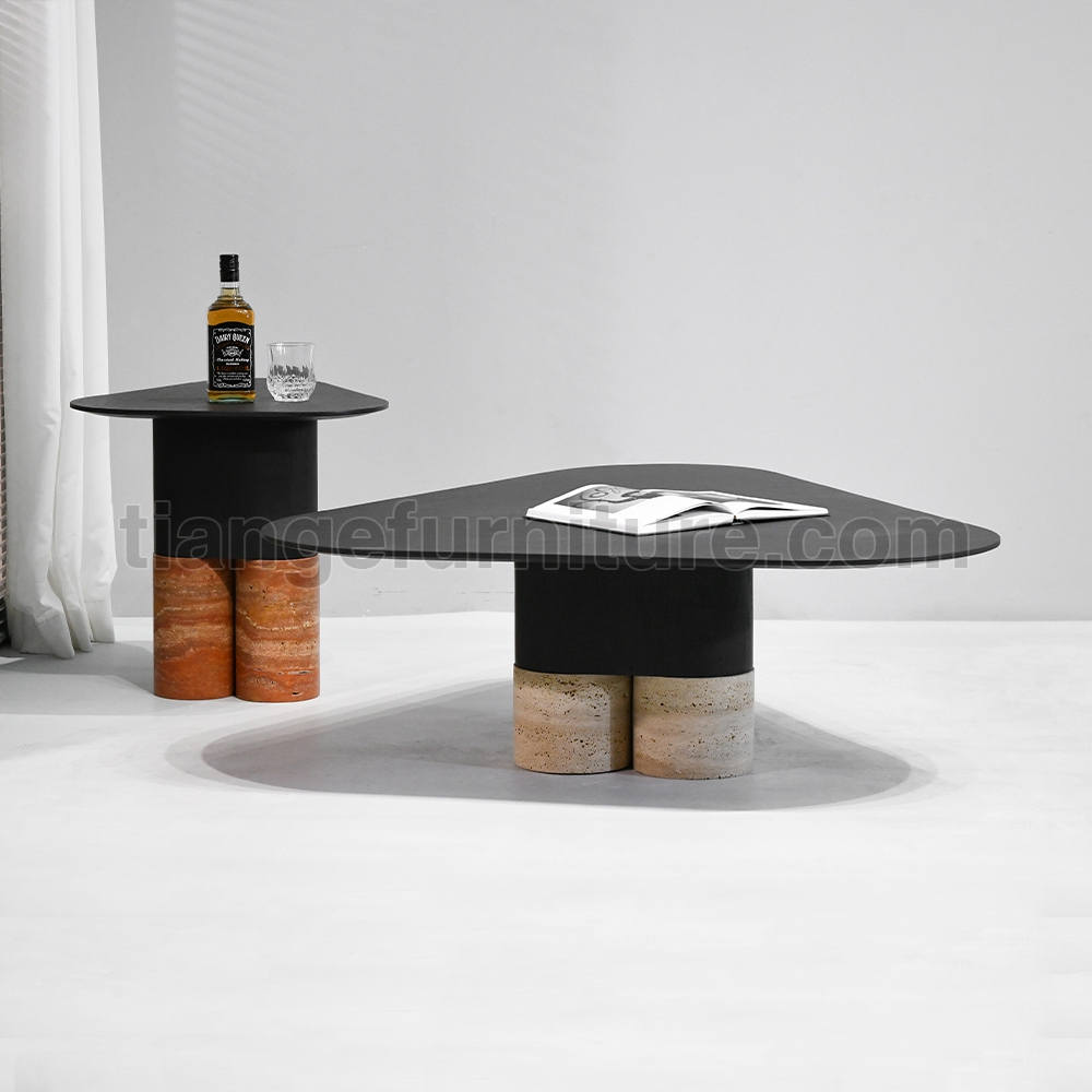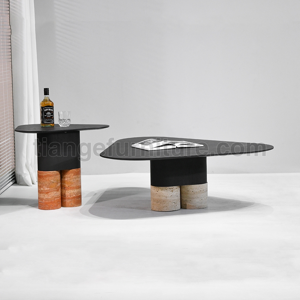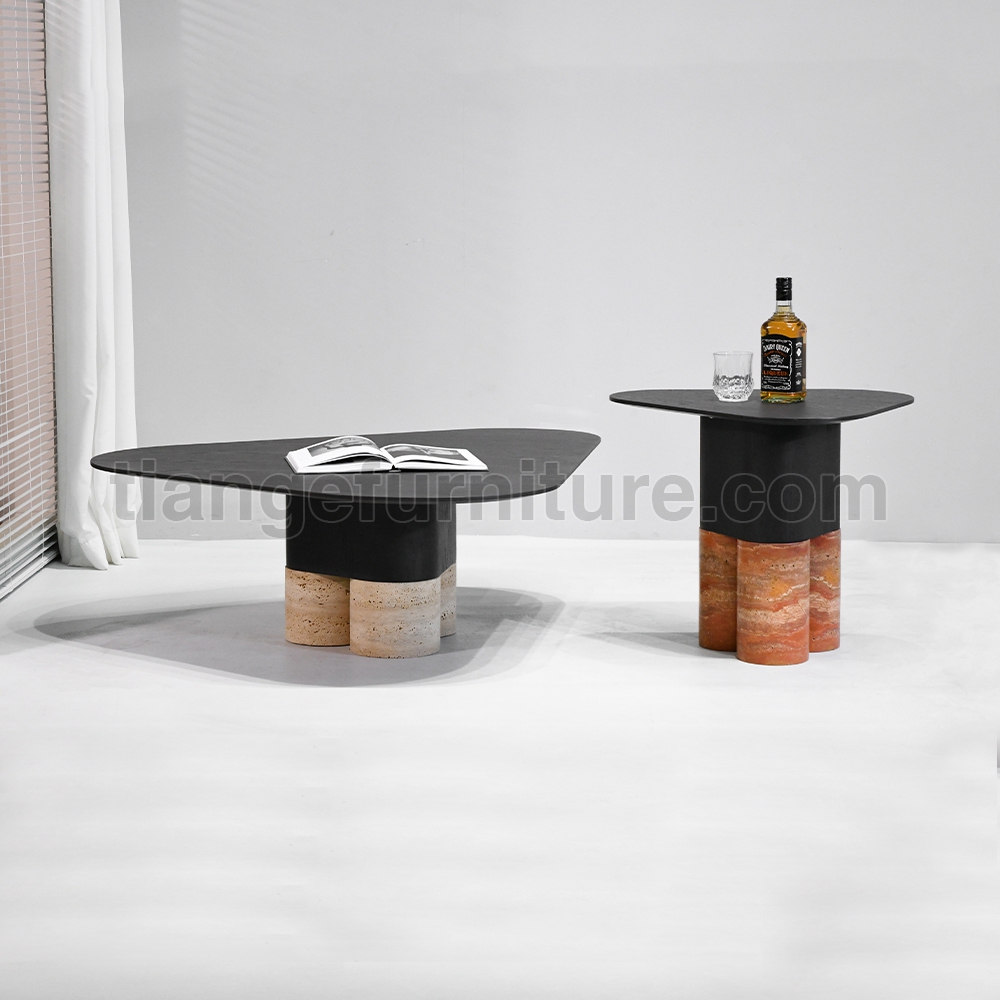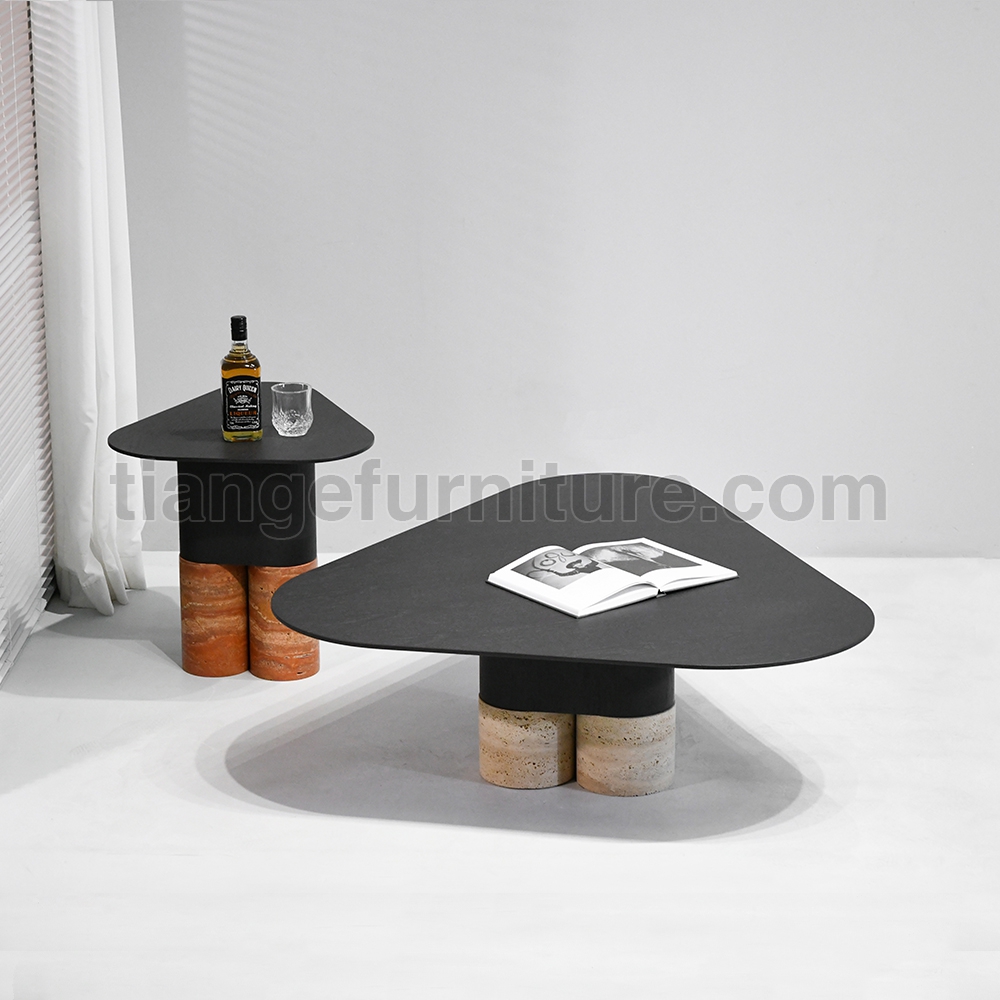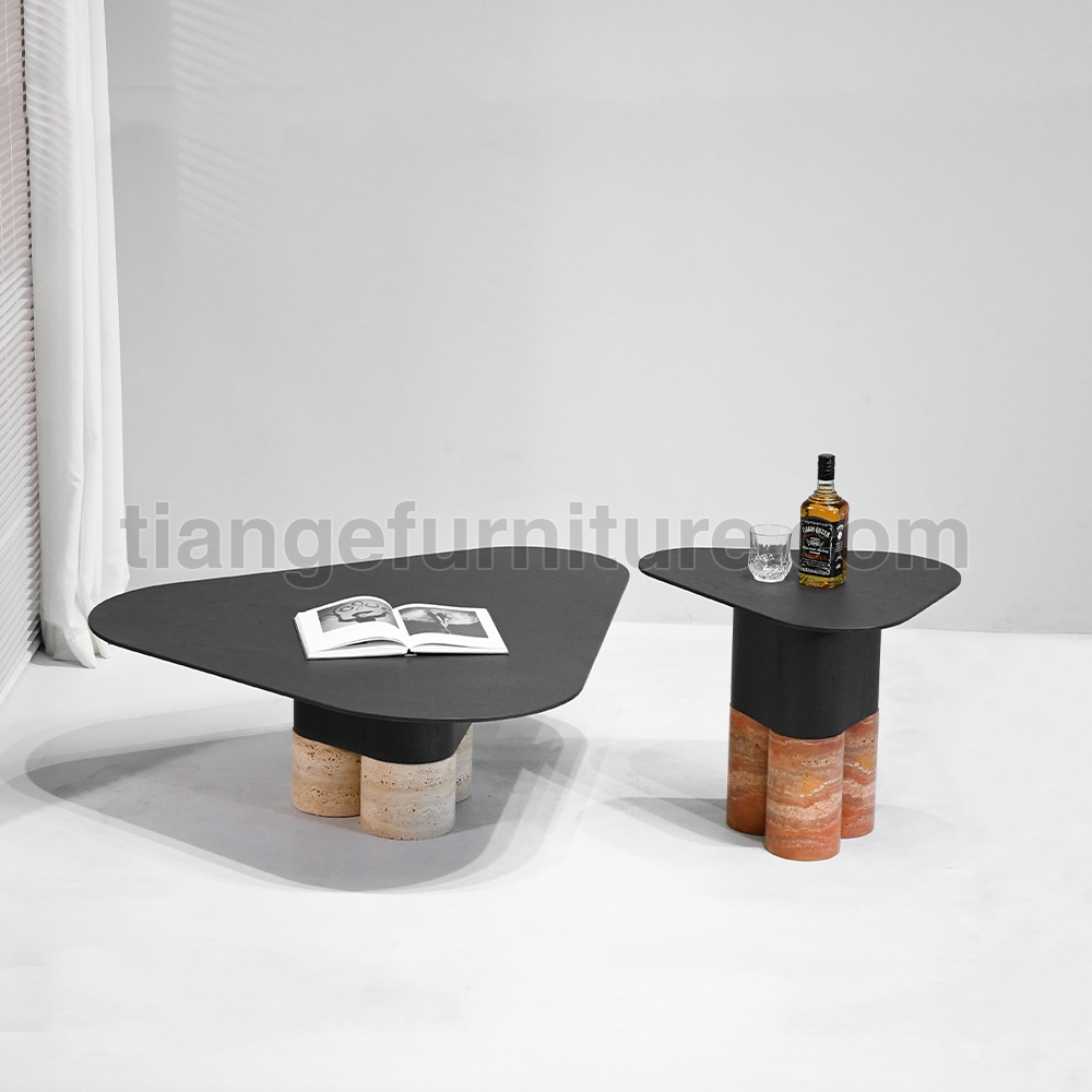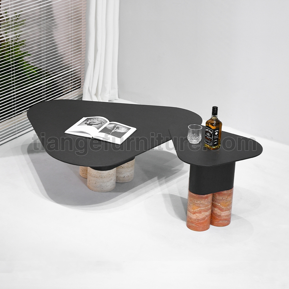 • Stylish Nordic saddle leather Coffee Table Marble Nesting Coffee Table D108