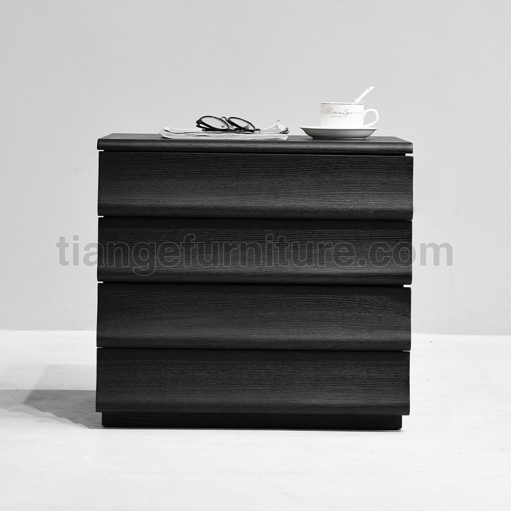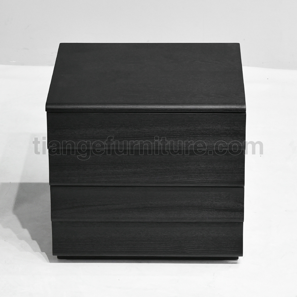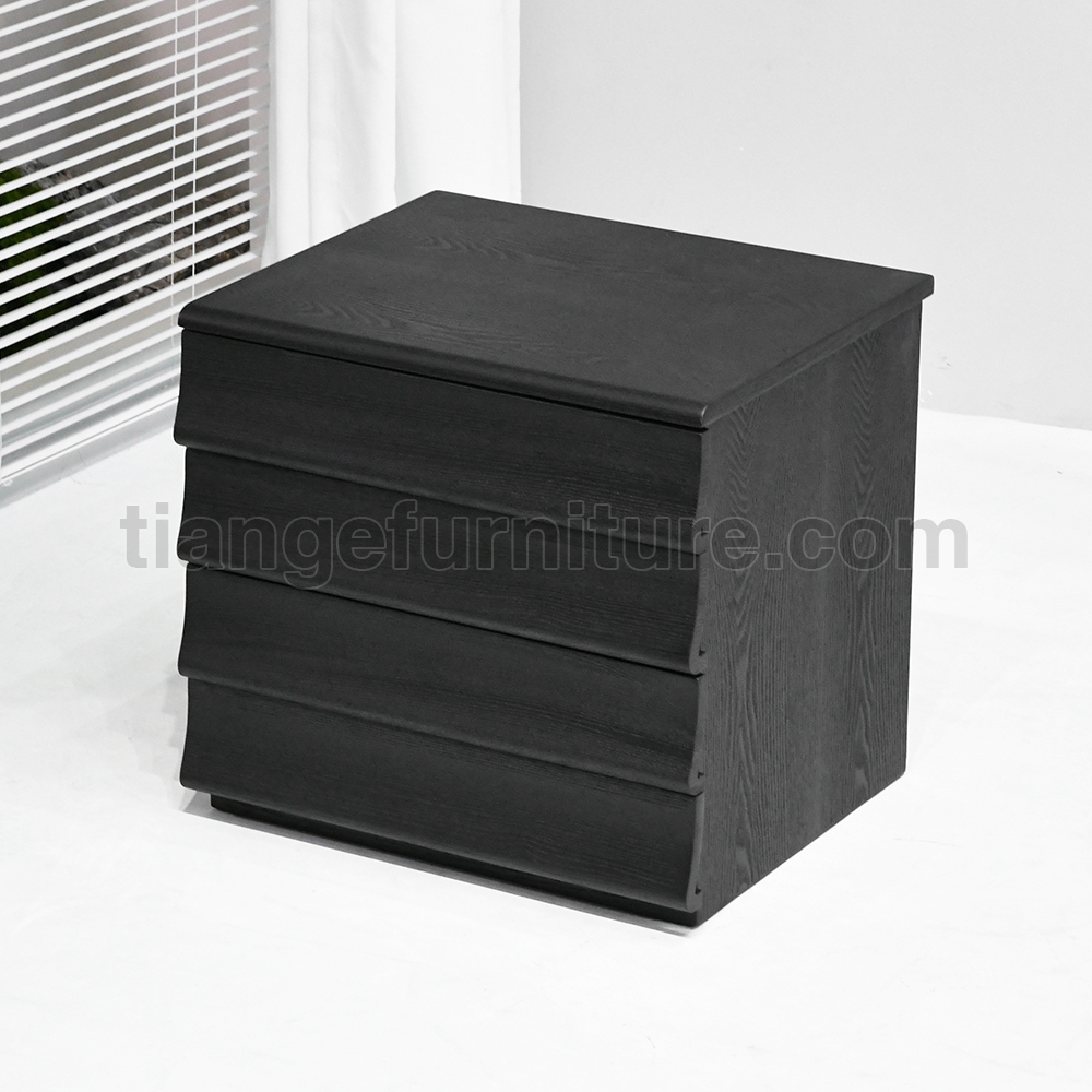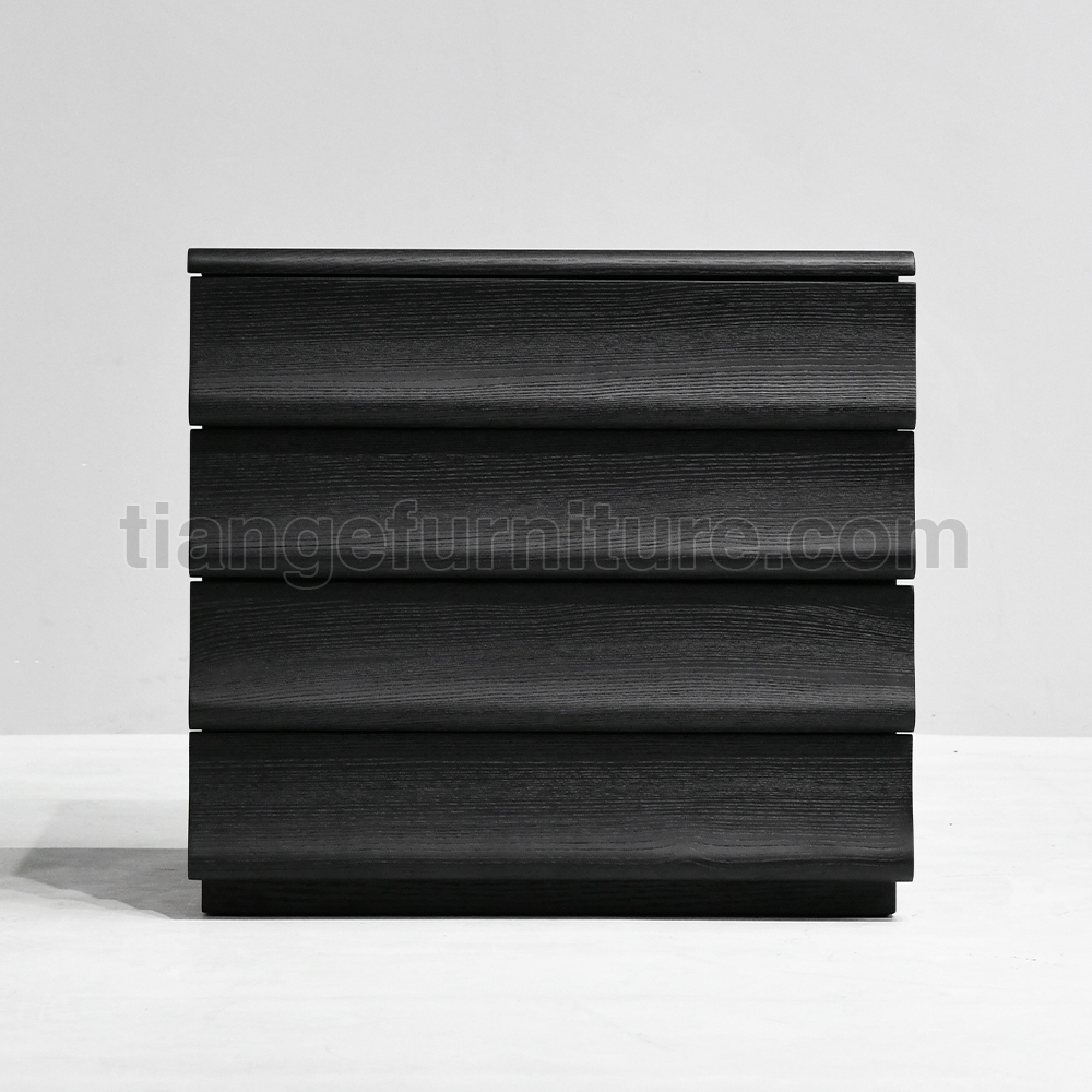 Rideaux is a collection of bedroom storage furniture defined by undulating surfaces that echo the sinuous design of Roman blinds, with their succession of curves. The family consists of a floor-standing bedside tables, a seven drawers chest, chest of 5 drawers, distinguished by the soft sequence of wooden draperies that characterize their fronts: starting from the top, this delicate wavy motif hides the edges and envelops the volumes of the furniture, before gently cascading onto the front with a slight lateral projection that creates a refined aesthetic detail, functional for drawer opening. Rideaux family is made of ash wood and available in various color variants obtained from natural pigments applied manually to the structure and then fixed with a specific beeswax.
