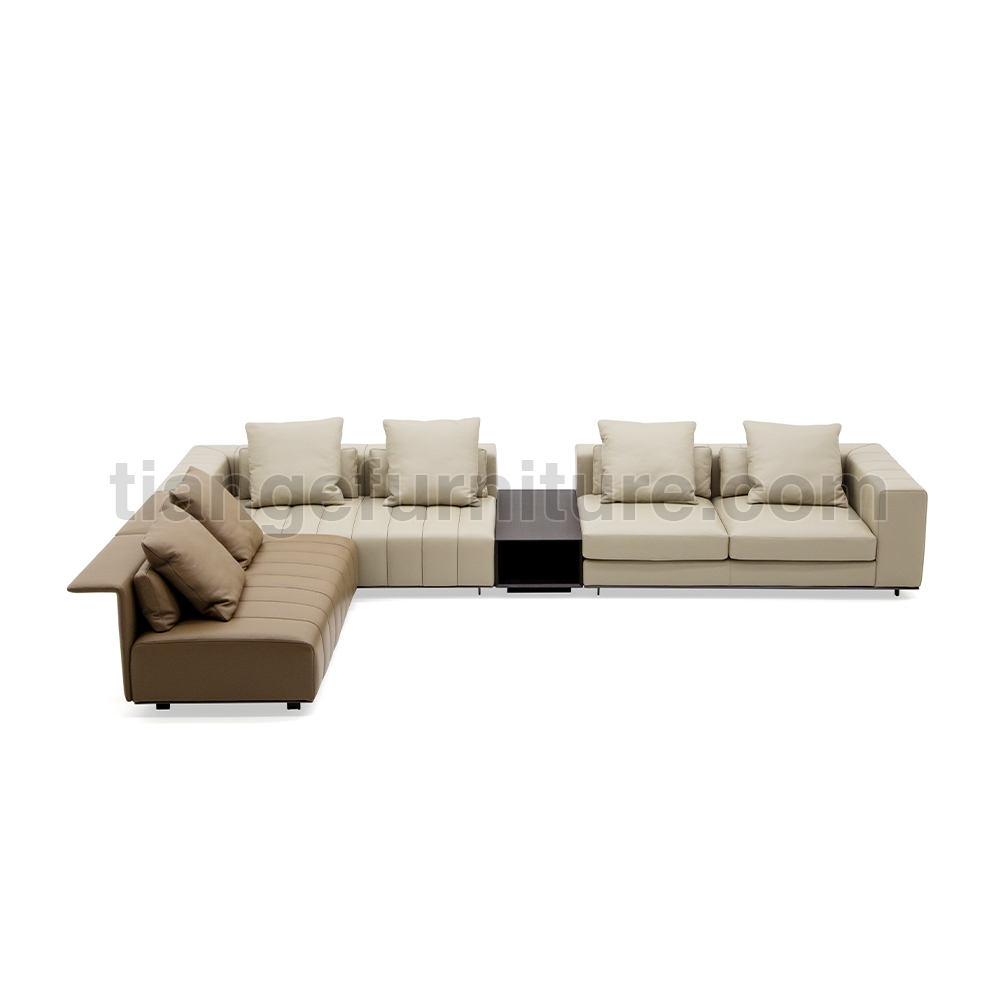With its highly innovative personality, Freeman “Tailor” interprets the current widespread need to create dynamic, differently accessorized islands of relaxation in which to live more intimately - like for reading and chilling out completely, or more social moments like conversing or spending time with family and friends. Freeman “Tailor” is an orderly clustering of shapes, with one-piece seats decorated with elegant stitching that accentuates its graphic, modern personality. The sophisticated tailoring of the upholstery reveals the company’s expertise in executing extremely complex fine-tailoring techniques. The pieces in fabric are assembled using a strip of eco-leather and double-stitched motif that lend a unique sense of depth.